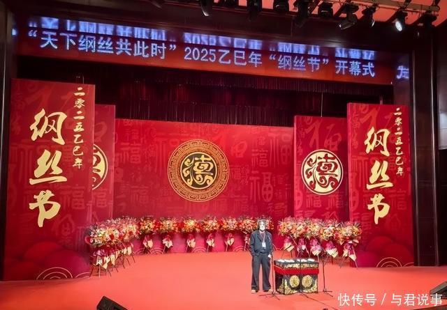 舞台和德云社常规大型演出舞台没有太大区别。后面幕布分三层。第一层,左右分别写着“纲丝节”这三个大字。在“纲丝节”的左上角,写着“二零二五乙巳年”一竖行小字。 第二层,左右分别是德云社的“德”字logo。第三层,大幕布中央是德云社的“德”字logo。第三层幕布前以及第一、二层幕布旁,摆放着一圈的花篮。 舞台上方,显示着“‘天下纲丝共此时’2025乙巳年‘纲丝节’开幕式”这一行字。整个舞台以红色为主,给人一种很喜庆的感觉。 舞台中央是一桌子,三个话筒。照片中,有工作人员站在逗哏的位置,不知道是在试音,还是在帮助灯光师调整灯光角度。